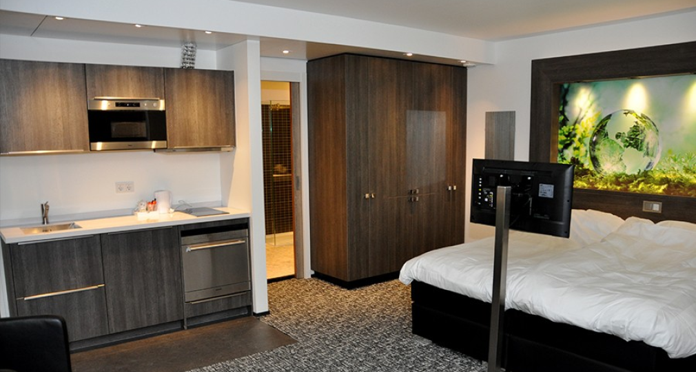 Dit moderne minihotel biedt 5 luxe hotelkamers en ligt in het hart van het authentieke centrum van Zwolle, binnen de stadsmuren. Zowel de Brasserie als het hotel zelf zijn modern ingericht en voorzien van alle gemakken. Voor gasten die wat minder goed ter been zijn, is er zelfs een lift. De kamers beschikken over een pantry met koelkast, vaatwasser, magnetron, kookgelegenheid en afzuigkap, waardoor ze bij een langer verblijf perfect functioneren als een micro-appartement. Gasten kunnen volledig zelfstandig verblijven, met een eigen voordeur, intercom en videofoon voor extra privacy en gemak.