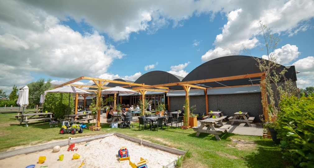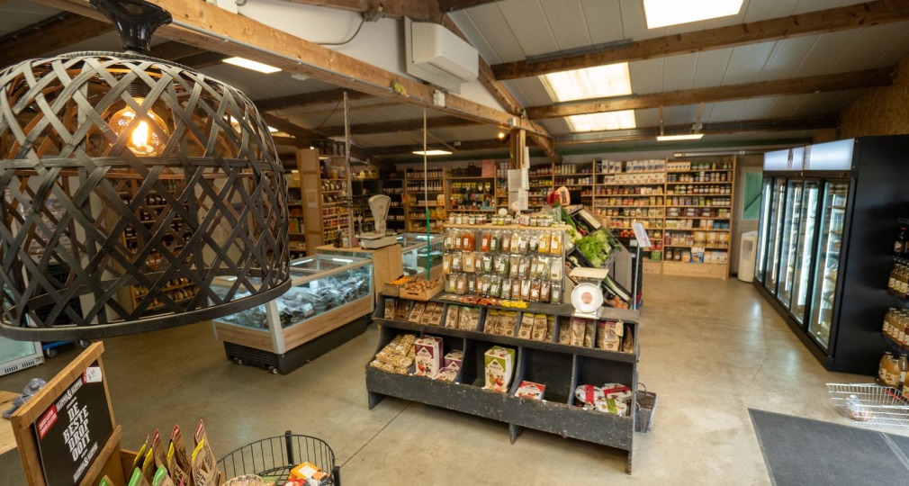 In de gloednieuwe winkel naast de bekende skybox met zicht op de varkensstallen shop je in een sfeervolle, landelijke setting een ruim assortiment biologische producten. Van groente- en fruitpakketten tot brood, zuivel, vlees, kaas, eieren en meer. Alles overzichtelijk en puur! Een heerlijke plek voor eerlijke boodschappen!